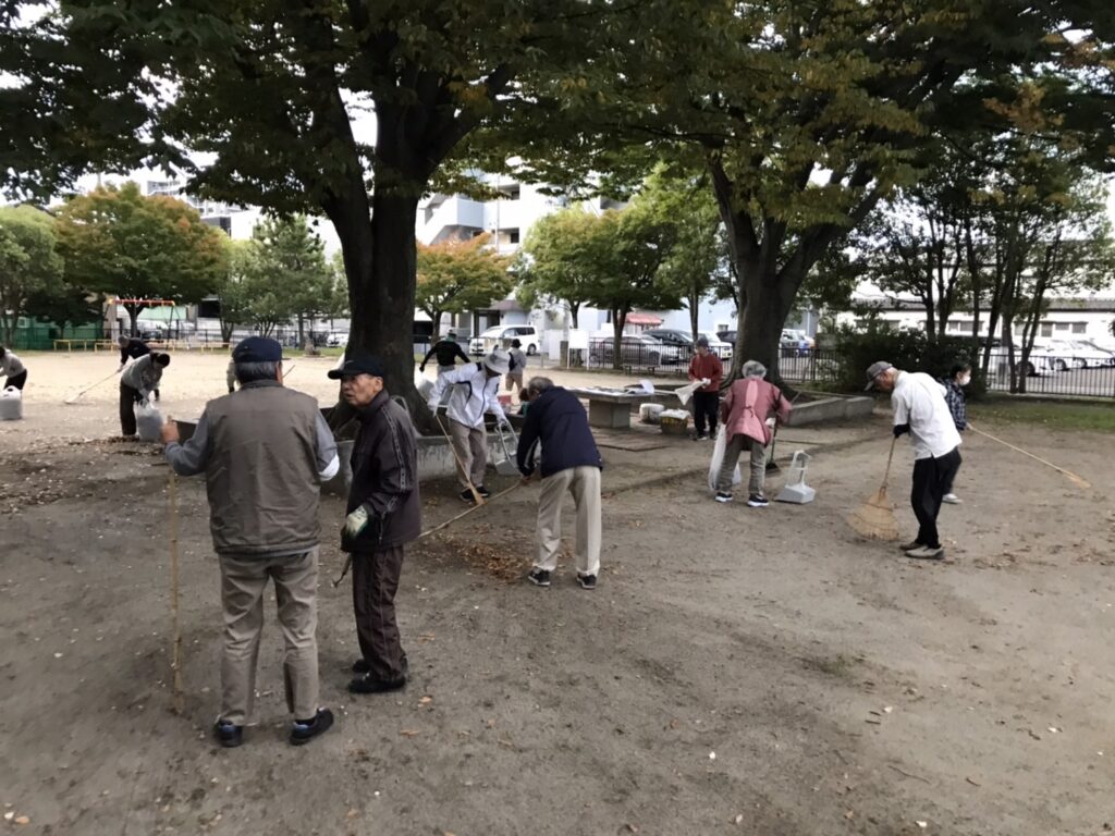 10月の公園清掃は雨のため19日に順延となりましたが、多くのみなさんに参加していただき、ありがとうございました。11月は9日(日)午前7時から行ないます。これまで集合時間は6時でしたが、日の出の時間が遅くなってまいりましたので11月と12月は7時集合といたしますので、よろしくお願いいたします。なお、天候不良の場合は16日(日)に延期とします。