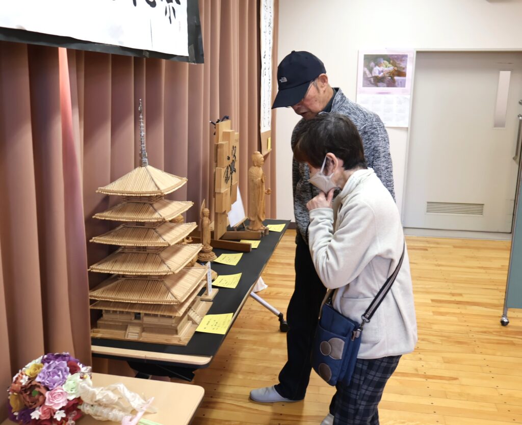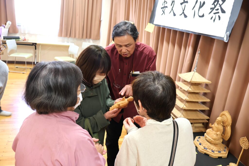 文化部が中心となって準備を進めてきた「安久文化祭」が29日(土)に西中田コミュニティ・センターで開催されました。会場には絵画、写真、木彫、書道、押し花、造花のリース、ミニチュアテーブルセット、ハーバリウムなどの他、着物を仕立て直した衣装や、バッグ、パッチワークのタペストリーなど多岐にわたる作品が展示されました。秋晴れの好天にも恵まれたこの日、会場には大勢の人たちが訪れ、作品の感想を語り合うなど和やかな雰囲気に包まれました。文化部の浅沼勝部長は「初めての開催でどれだけの作品が集まるか不安もありましたが予想を上回る出展となり、安久町内の多芸多才な人材の豊富さに驚いています。今後もこの催しを続けていければ。」と話していました。